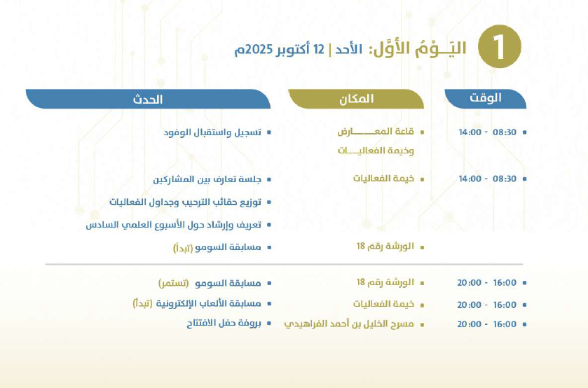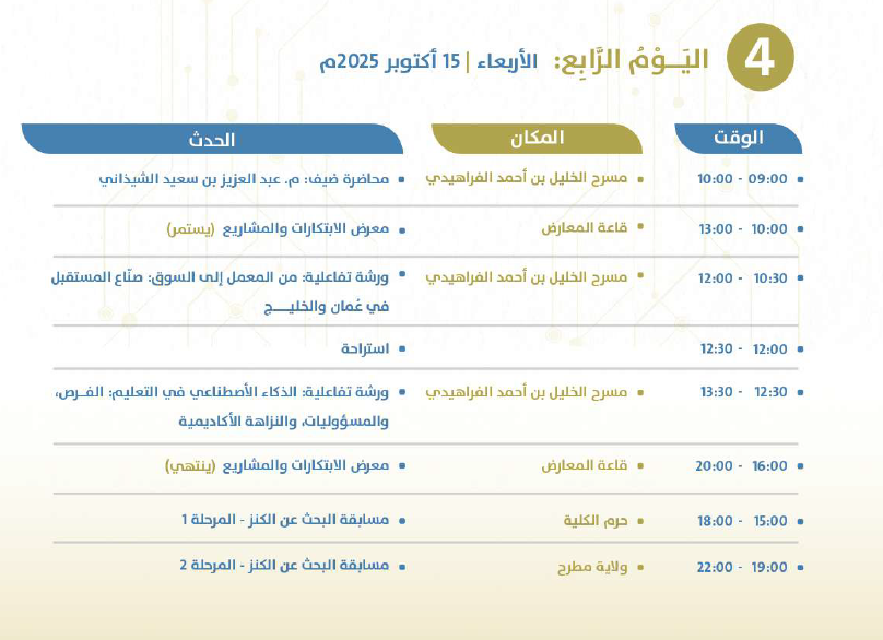 - ندوات تفاعلية ولقاءات فكرية مثيرة للاهتمام.
